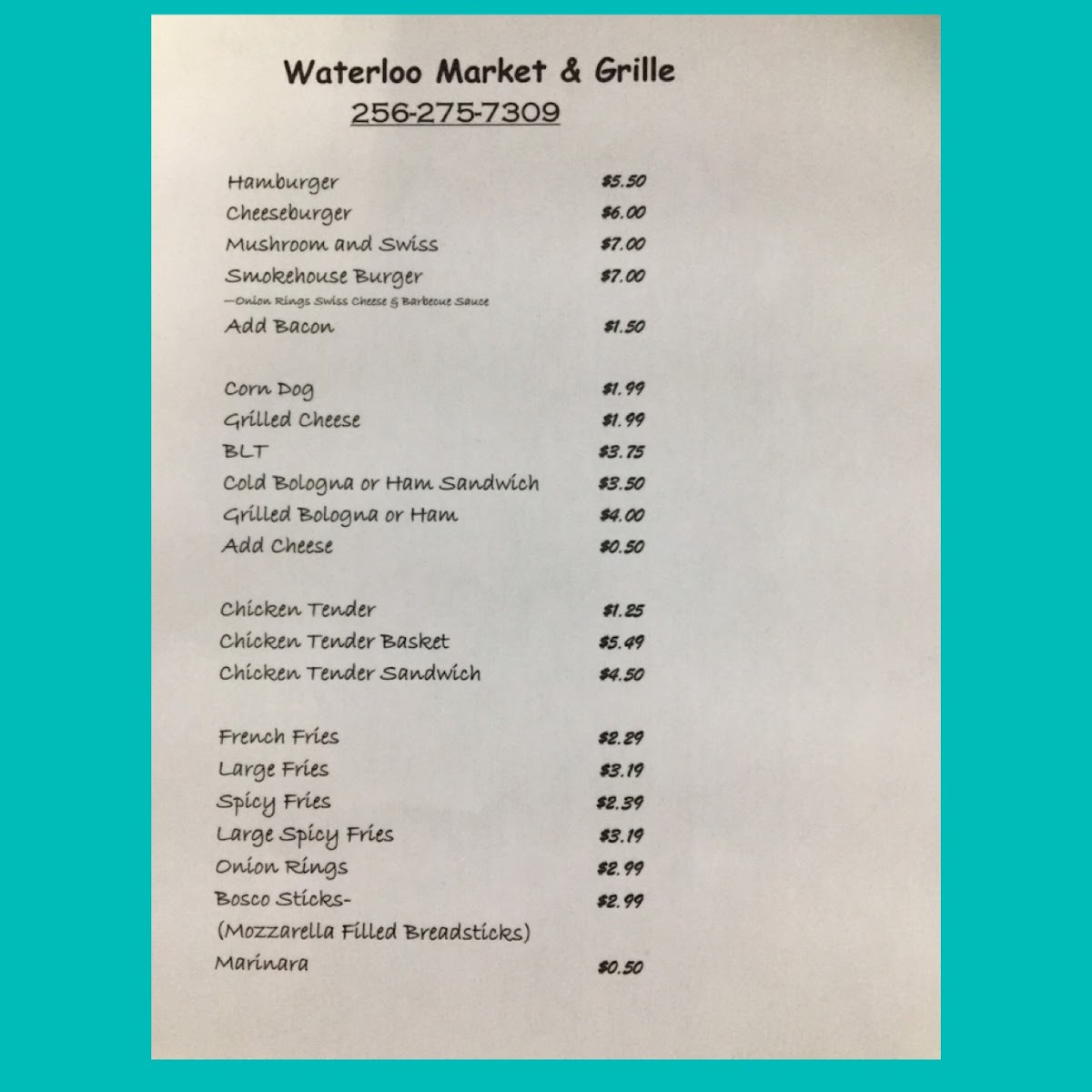 Welcome to Waterloo Market & Grill, a charming gem nestled at 403 Main St, Waterloo, AL. This family-owned establishment embodies the spirit of classic country stores, offering a warm and inviting atmosphere. The menu showcases generous portions and home-cooked flavors, highlighted by their **mouthwatering burgers**. Customers rave about the **humongous cheese burgers** and **spicy fries**, delivering a delightful blend of taste and satisfaction in every bite.